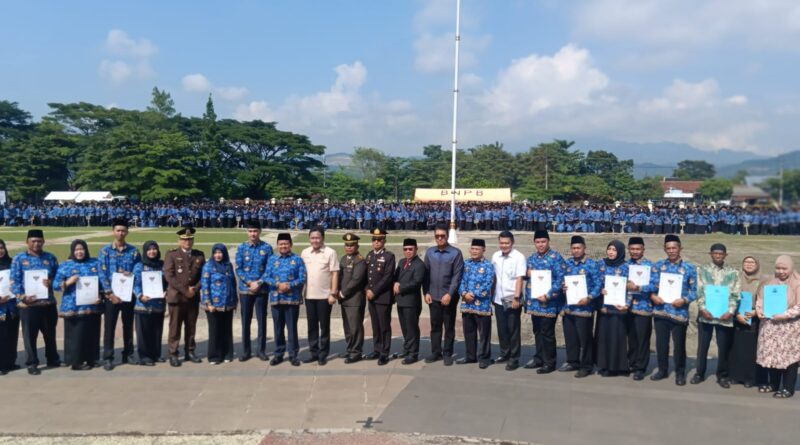 Sumedang, RBO -Bertepatan dengan peringatan hari Korpri ke 54 tahun 2025 pemerintah Kabupaten Sumedang menyerahkan 5.408 SK pengangkatan PPPK paruh