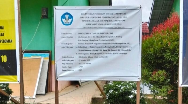 Baca Selengkapnya481 TANJAB BARAT, RBO – Proyek revitalisasi SMA Negeri 10 Kabupaten Tanjung Jabung Barat (Tanjab Barat) dengan nilai anggaran mencapai Rp2,6 miliar