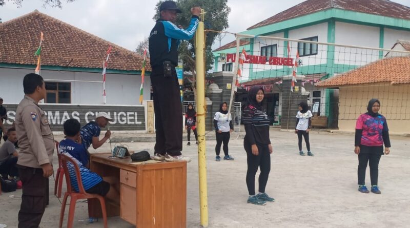 Bhabinkamtibmas Monitoring Turnamen Bola Volley Meriahkan HUT RI di Kecamatan Cibugel