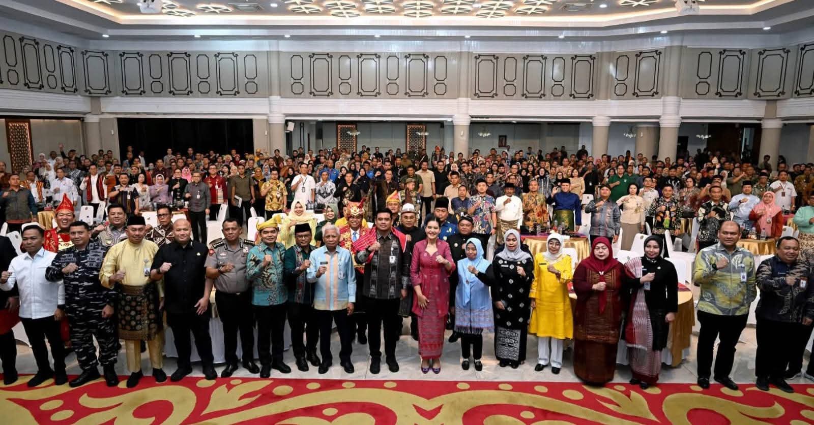 Kegiatan ini turut dihadiri Wakil Gubernur Sumatera Utara Surya, Wakil Ketua DPRD Sumut Ihwan Ritonga, Kepala Kantor Perwakilan Bank Indonesia Sumut Rudy Brando Hutabarat, unsur Forkopimda Provinsi Sumut, seluruh Bupati dan Wali kota se-Sumatera Utara, Penjabat Sekretaris Daerah Provinsi Sumut Sulaiman Harahap, Ketua TP PKK Sumut Kahiyang Ayu, serta seluruh OPD terkait. (Jhon F)