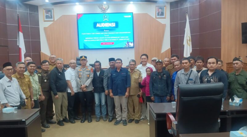 Sumedang, RBO – Ketua DPRD Kabupaten Sumedang Ja’far Sidik didampingi Ketua Komisi I Asep Kurnia menerima aspirasi dari Paguyuban Tani Cimarias dan Cinanggerang Kecamatan Pemulihan pada Selasa 13 Januari 2026 bertempat di ruang rapat paripurna prihal tindak lanjut status kepemilikan tanah dan perpanjangan sertifikat HGB atas nama PT. Subur Setiadi.