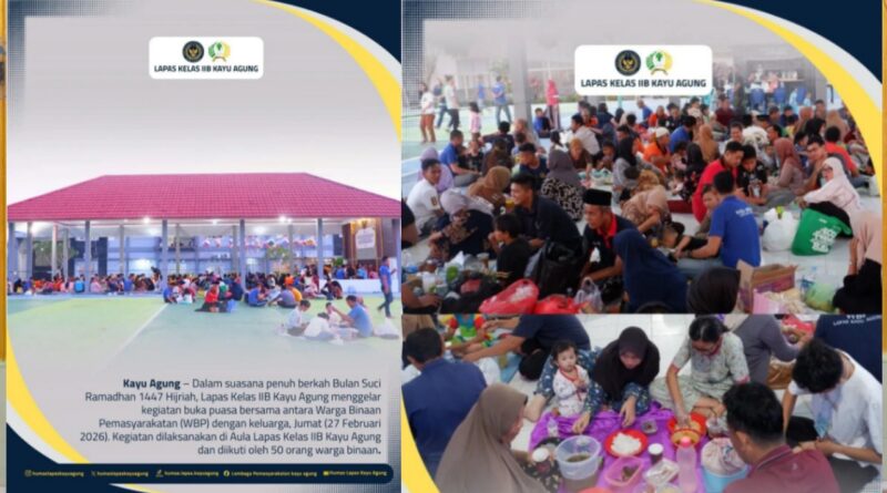 Kayu Agung, RBO — Dalam suasana penuh berkah Bulan Suci Ramadhan 1447 Hijriah, Lapas Kelas IIB Kayu Agung menggelar kegiatan buka puasa bersama antara Warga Binaan Pemasyarakatan (WBP) dengan keluarga mereka, Jumat (27/2/2026).