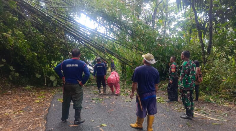 Sumedang, RBO — Akibat hujan deras disertai angin kencang dan petir, dua rumpun bambu tumbang menutup ruas Jalan Raya Sudimampir–Cimalaka, tepatnya di wilayah Desa Cipanas, Kecamatan Tanjungkerta, Kabupaten Sumedang, pada Sabtu sore sekitar pukul 14.45 WIB.