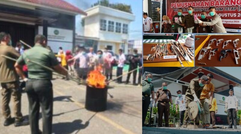 Barang bukti yang dimusnahkan antara lain narkotika, senjata api, senjata tajam, pakaian, dan barang lain. “BB yang kita musnahkan berasal dari periode Januari hingga Agustus 2025,” ujar Kajari OKI, Sumantri SH, MH.