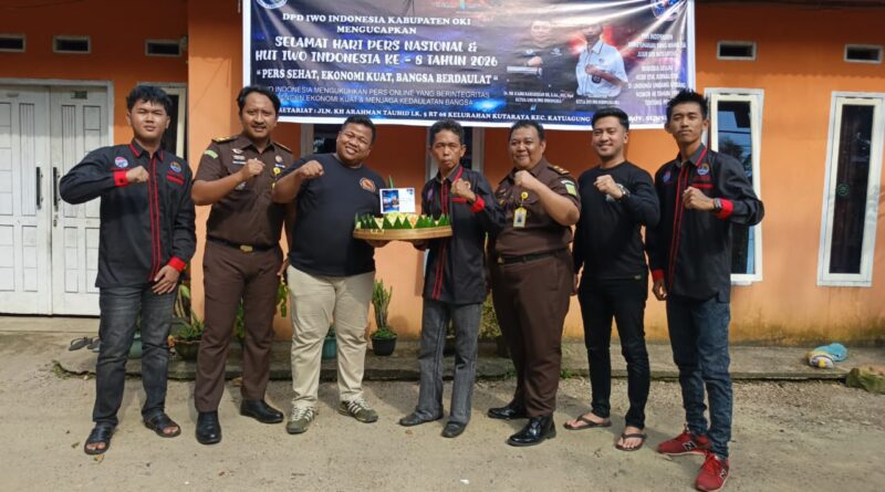 OGAN KOMERING ILIR, RBO – Dalam rangka memperingati Hari Pers Nasional (HPN) 2026 dan HUT IWO Indonesia ke-8, Kejaksaan Negeri (Kejari) Kabupaten Ogan Komering Ilir (OKI) menyambangi Sekretariat DPD IWO Indonesia OKI di Jalan KH Arahman Tauhid, Lingkungan V RT 08, Kelurahan Kutaraya, Kecamatan Kayuagung, Rabu (11/2/2026).