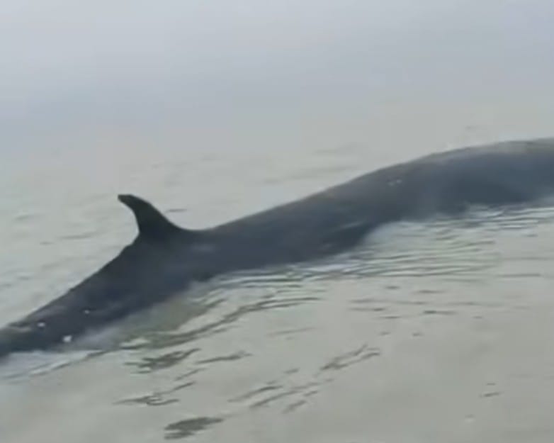 Fenomena langka ini sontak menyedot perhatian masyarakat. Mamalia laut tersebut terlihat terjebak di perairan dangkal sehingga tidak mampu bergerak kembali ke habitat asalnya.