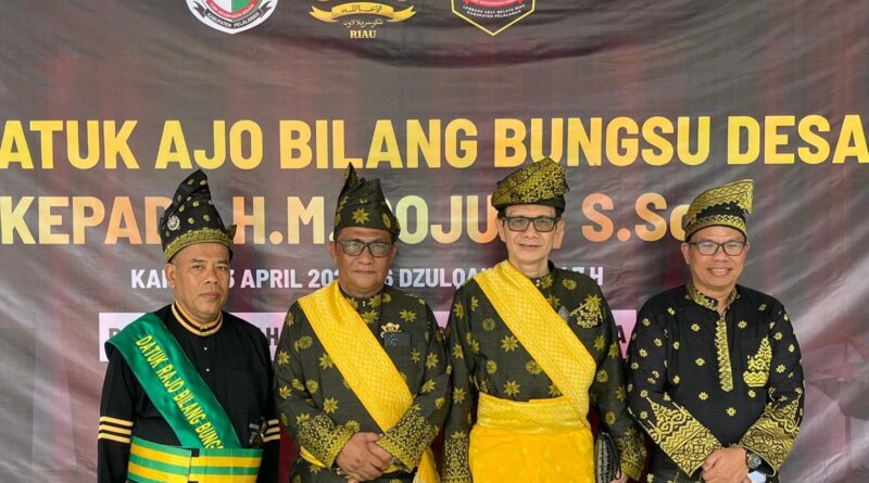 Langgam, RBO – Suasana penuh khidmat dan nuansa adat kental menyelimuti prosesi penobatan HM Rojuli, S.Sos sebagai Datuk Ajo Bilang Bungsu Desa Tambak, Kamis (23/4/2026).