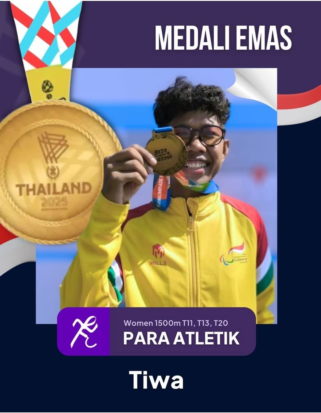 Di ajang ASEAN Para Games Thailand, Tiwa berlari bukan sekadar mengejar garis finis, tetapi menjemput mimpi yang telah lama ia rawat dengan ketekunan dan keyakinan.