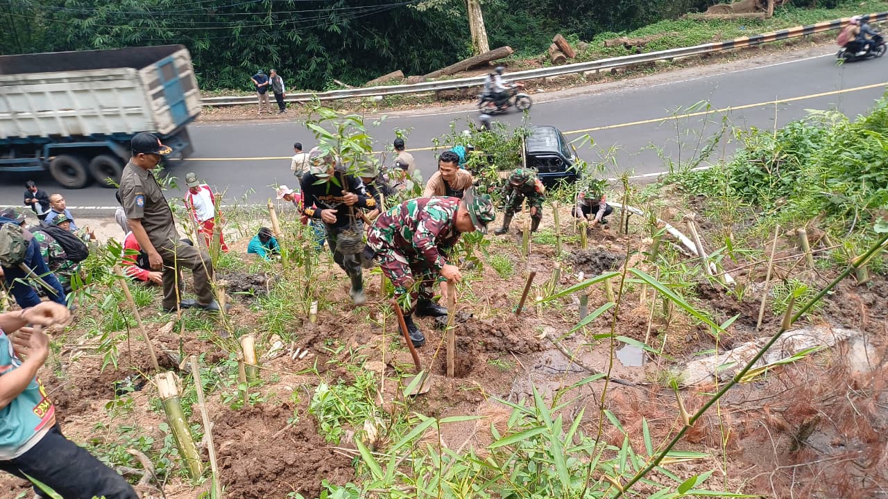Danramil 1004/Tanjungsari Kapten Inf Agus Hermawan menyampaikan bahwa kegiatan ini merupakan langkah nyata dalam mengantisipasi potensi bencana longsor di masa mendatang, sekaligus sebagai upaya menjaga kelestarian lingkungan.
