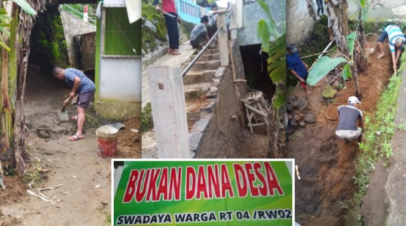 Ronald salah seorang warga RT 04 mengatakan, kalau jalan selebar dua meter dengan panjang 6 meter ini adalah murni hasil patungan warga yang khawatir sewaktu-waktu bisa roboh.