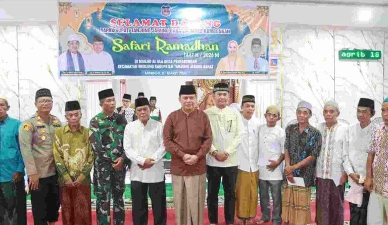 TANJAB BARAT, RBO – Pemerintah Kabupaten Tanjung Jabung Barat menggelar Safari Ramadan di Masjid Al-ULA, Desa Penyabungan, Kecamatan Merlung, Minggu (01/03). Kegiatan ini menjadi ajang silaturahmi sekaligus penyampaian program pembangunan kepada masyarakat.