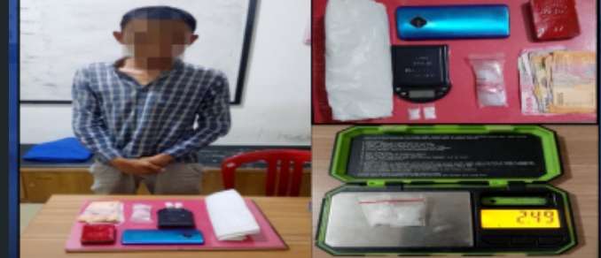 Selain itu, turut diamankan satu unit timbangan digital, plastik klip kosong, kantong plastik putih, satu unit ponsel Vivo S1 Pro, serta uang tunai Rp250 ribu yang diduga hasil transaksi.