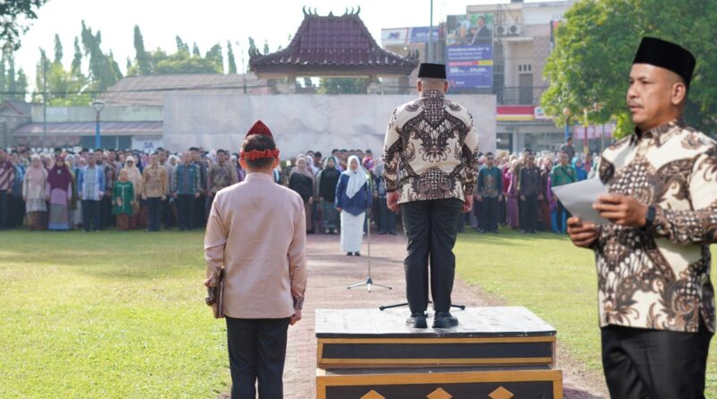 Apel peringatan digelar di halaman Kantor Bupati OKI, Selasa (21/4/2026), dipimpin langsung oleh Wakil Bupati OKI, Supriyanto.