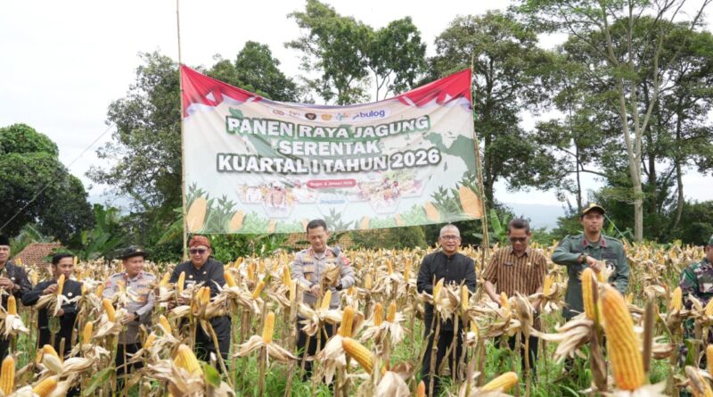 BOGOR, RBO – Polres Bogor turut mendukung program ketahanan pangan nasional dengan melaksanakan kegiatan Panen Raya Jagung Serentak Kuartal I Tahun 2026, yang berlangsung pada Kamis (8/1/2026) pukul 10.40 WIB di Kampung Cidangdeur , Desa Tugu Jaya, Kecamatan Cigombong, Kabupaten Bogor.