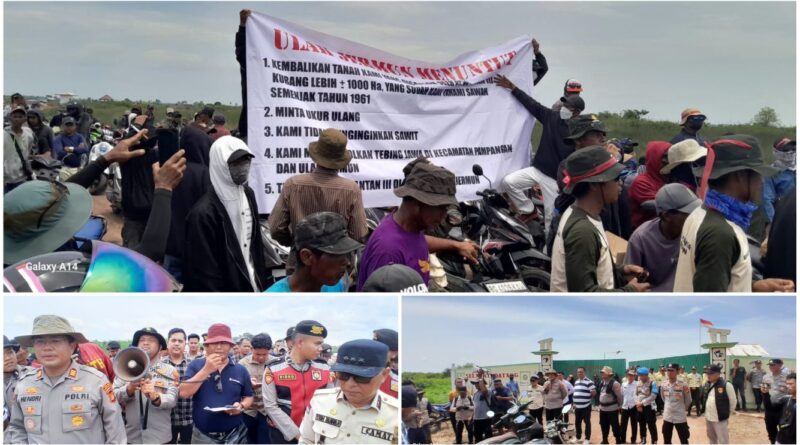 Pampangan, RBO – Ratusan warga dari lima desa yang tergabung dalam Masyarakat Petani Bersatu menggelar aksi damai di area PT Kelantan Sakti III, Rabu (5/11), Kecamatan Pampangan, Kabupaten Ogan Komering Ilir (OKI).