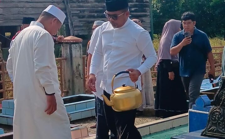 Pelalawan, RBO – Bupati Pelalawan H. Zukri, SM, MM menghadiri kegiatan ziarah kubur sekaligus menyambut datangnya Bulan Suci Ramadan 1447 Hijriyah yang dilaksanakan di Tempat Pemakaman Umum (TPU) dan Masjid Desa Kuala Terusan, Minggu (8/2/2026). Kegiatan ini diselenggarakan oleh Ikatan Keluarga Besar Kuala Terusan (IKBKT).