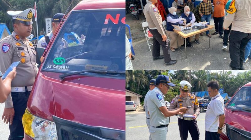 PELALAWAN, RBO — Satuan Lalu Lintas Polres Pelalawan melaksanakan pemeriksaan urine terhadap pengemudi angkutan umum dan barang dalam rangka Operasi Zebra Lancang Kuning 2025. Kegiatan digelar pada Rabu (26/11/2025) sekitar pukul 09.00 WIB di Pos Lantas Kiyab Jaya, Kecamatan Bandar Sei Kijang.