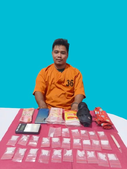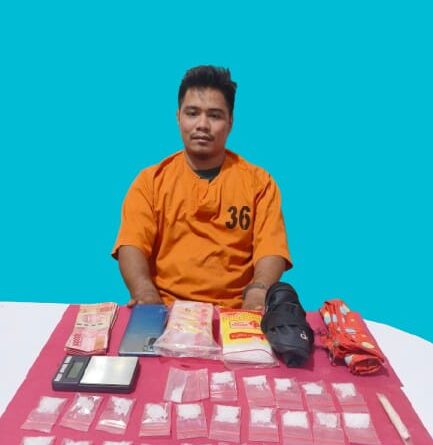 Adapun barang bukti yang diamankan dalam perkara ini antara lain 26 paket diduga narkotika jenis sabu dengan berat kotor sekitar 65,90 gram, satu unit timbangan digital, satu unit telepon genggam Android merek Redmi, uang tunai Rp1.000.000, serta satu unit sepeda motor Honda Vario warna hitam tanpa nomor polisi.