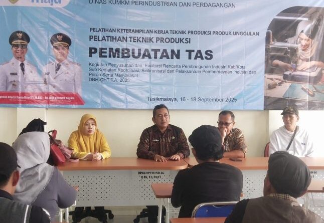 TASIKMALAYA, RBO – Dinas Koperasi, Usaha Mikro Kecil dan Menengah, Perindustrian dan Perdagangan (KUMKM Perindag) Kota Tasikmalaya menutup resmi Pelatihan Teknik Produksi Pembuatan Tas.