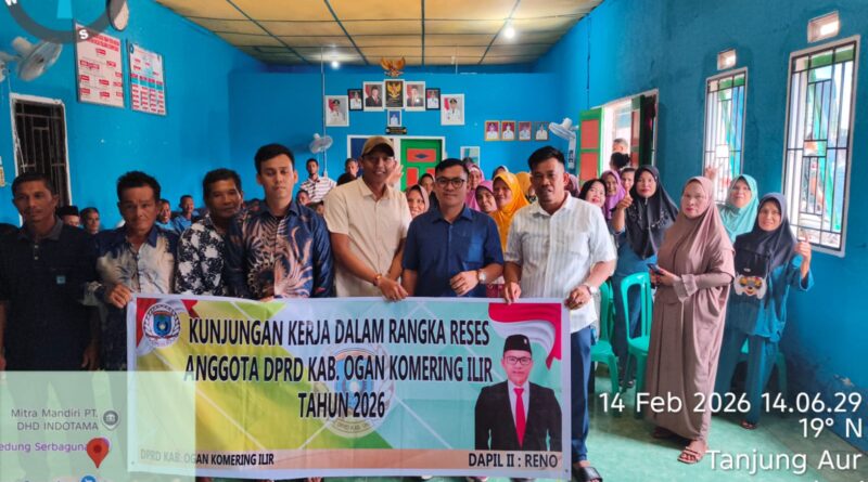 Ogan Komering Ilir, RBO – Kunjungan Kerja Dalam Rangka Reses Anggota DPRD Kabupaten Ogan Komering Ilir (OKI) Daerah Pemilihan (Dapil) II dari PDI Perjuangan, Reno, melaksanakan kegiatan reses atau kunjungan kerja di Desa Tanjung Aur, Kecamatan Jejawi, Kabupaten Ogan Komering Ilir, Provinsi Sumatera Selatan, Minggu (16/2/2026).