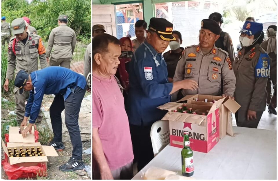 Tim Gabungan Satpol PP dan Polres Pelalawan Gelar Razia Lapou Tuak, Puluhan Botol Miras Diamankan