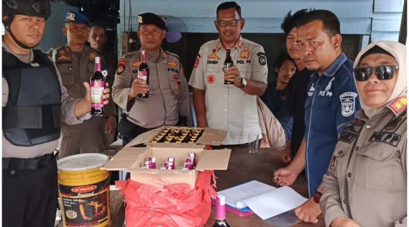 Pelalawan, RBO – Tim gabungan Satpol PP Kabupaten Pelalawan bersama Polres Pelalawan melakukan razia lapou tuak di tiga titik berbeda di kawasan Jalan Engku Raja Lela Simpang Samak RT 05/RW 06 Lingkungan Pulau Payung serta Jalan Datuk Bandar, Selasa (18/11/2025).