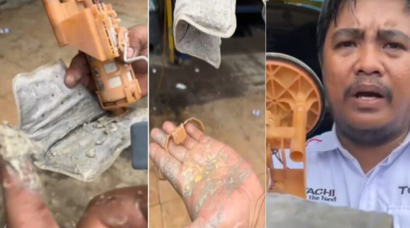 “Masalahnya ini teman-teman, lumpur yang berada di fuel pump mobil. Sudah tujuh mobil dengan kasus yang sama dalam satu minggu ini. Ini seperti campur air,” ujar mekanik tersebut sambil memperlihatkan kondisi fuel pump yang kotor dan berair.